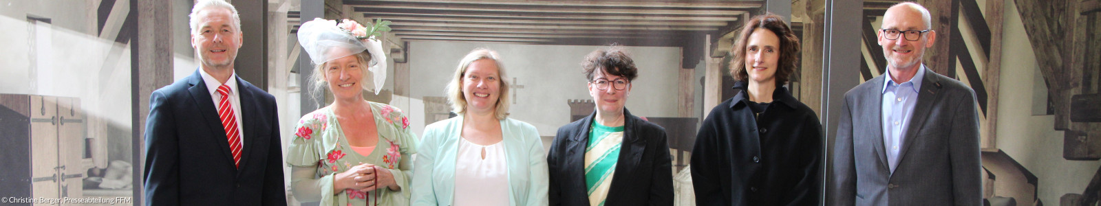 Die digitalen Kirchenführung "Macht der Zeichen" schafft mit Hilfe der App Actionbound einen interaktiven Zugang zu Spitalkirche und Baugruppe Stadt. Die Realisierung wurde von der Sparkasse Bad Windsheim und vom Verein Spitalkirche finanziell unterstützt. Zur Spendenübergabe kamen Sparkassendirektor Thomas Sighart, Heidi Wolfsgruber (als Kunstfigur Henriette Huch), Claudia Berwind, Dr. Janette Witt, Leiterin des Museums Kirche in Franken, sowie Juliane Sander und Johann Delp, Vorsitzende des Fördervereins Spitalkirche (siehe Foto, v.l.n.r). Der Actionbound ist kostenlos und soll jüngere Museumsbesucher*innen ansprechen, insbesondere auch Konfi-Gruppen. Mehr dazu hier.