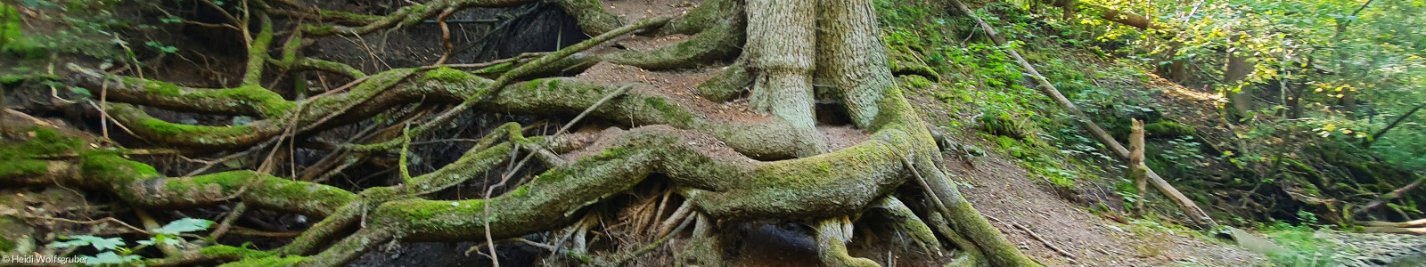 Auf der Pilgertour sind Sie eingeladen, sich von Impulsen und Orten auf dem Weg inspirieren zu lassen, die den eigenen Lebensweg aufgreifen. So bietet beispielsweise ein riesiger Baum, dessen Wurzeln offenliegen, Raum für die Frage nach den eigenen Wurzeln und nach dem, was einen geprägt hat und Halt gibt.